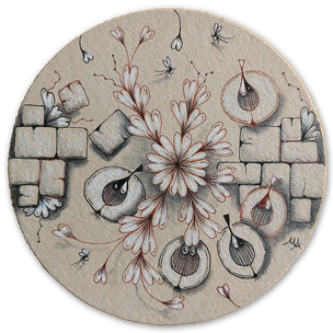 Beim Tangle-Tee am 3.10.2025 habe ich Aebleskiver vorgestellt und diese Zendala-Kachel ist enstanden.